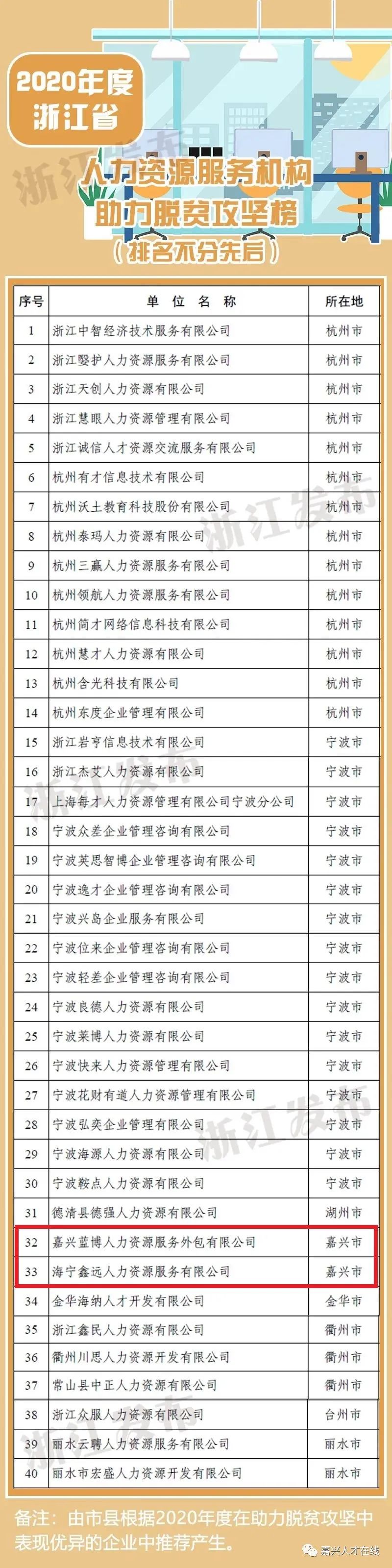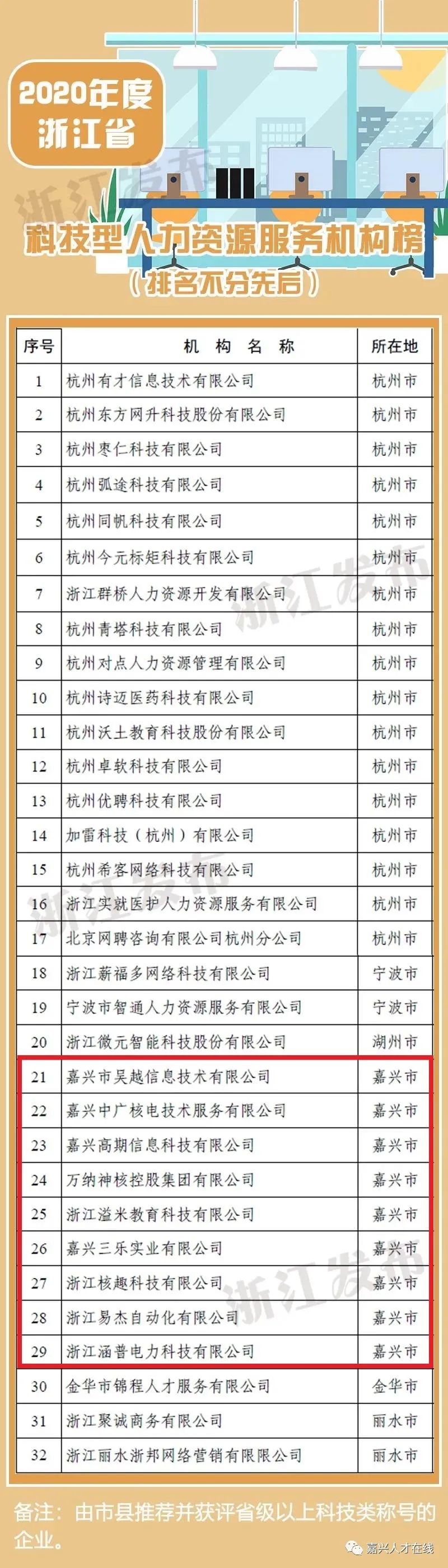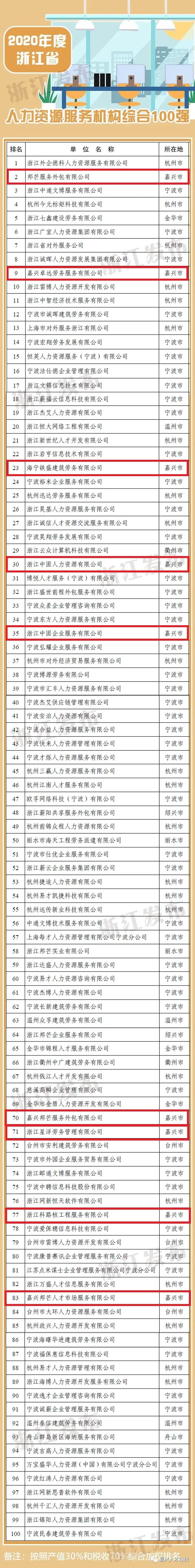 7月29日,《浙江省人力资源服务业发展白皮书(2021)》发布,包含13个领域榜单,这是自2019年以来,浙江省第3次发布人力资源服务业榜单。其中,嘉兴55家人力资源服务机构榜上有名。